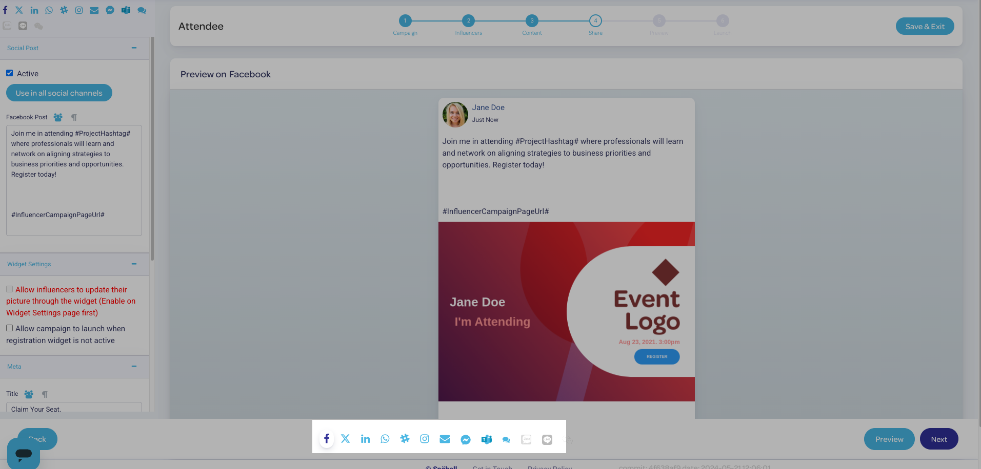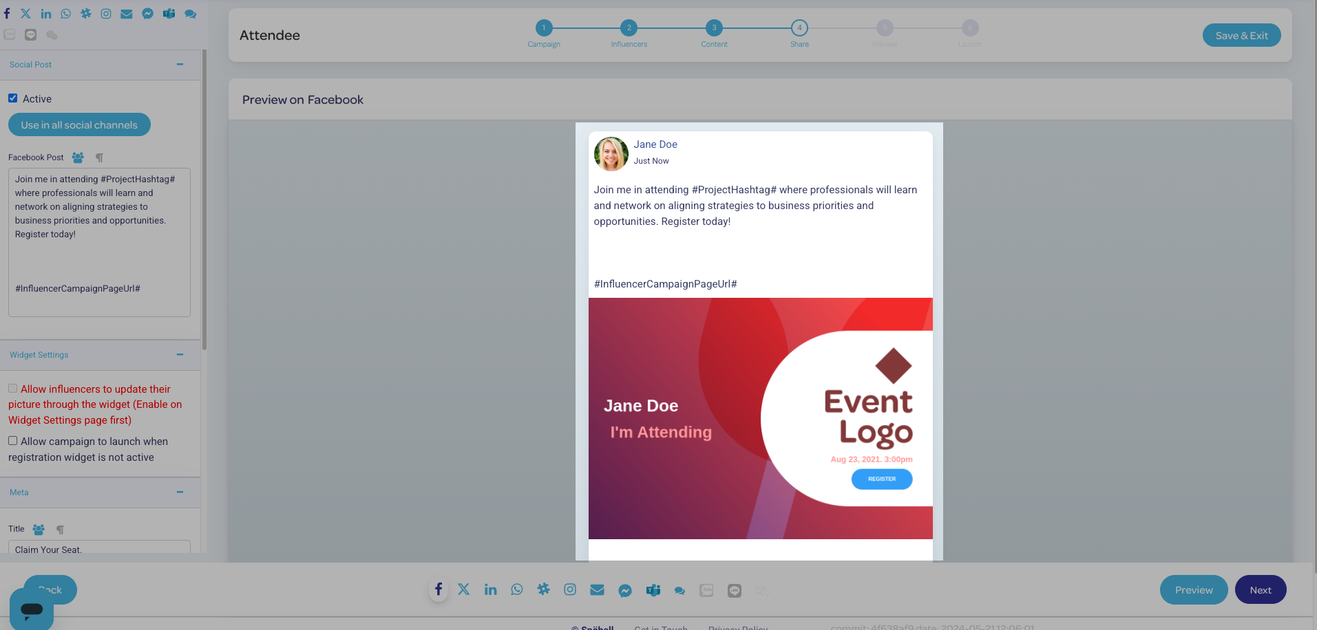 The social share page is a key element of your campaign; this is how your event gets shared from your influencers to their invitees.