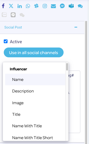 To create universal content for ALL social channels, select Use in all social channels. Note that this option is not typically recommended, as your share post will be subject to the limitations of the most restrictive social channel.