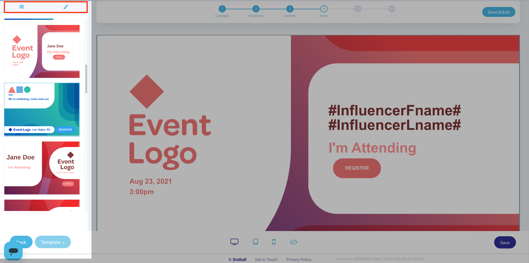 Examples of dynamic content that you can merge include the influencer name, their landing page link, speaker session info, and custom video content.